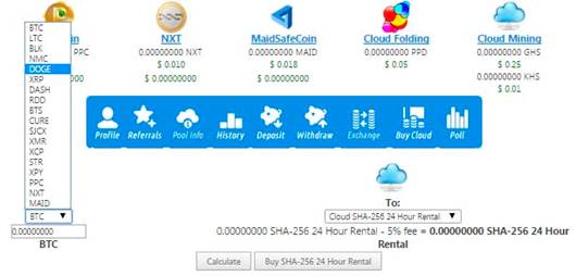 После того как выбрали DOGE нажимаем «Buy SHA-256 24 Hour Rental» и подтверждаем.