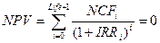 Расчет внутренней ставки доходности (IRR) осуществляется методом итеративного подбора такой величины ставки дисконтирования, при которой чистая текущая стоимость инвестиционного проекта обращается в ноль.