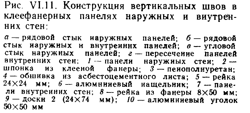 3) Вертикальный стык панелей наружных стен по углам здания: заделка торцов панелей брусками и обшивка узкой полоской асбестоцементного листа, угол обрамляют аллюминеевым уголком на шурупах.
