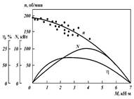 Различают четыре основных режима: холостой (М = 0); оптимальный (максимального КПД); экстремальный (максимальной мощности) и тормозной (п = 0).