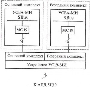 Устройство сопряжения УС 19-МИ предназначено для непосредственного подключения ВК-15 к аппаратуре передачи данных 5Ц19 (АПД 5Ц19). Подключение АПД 5Ц19 к ВК-15 выполняется по определенной схеме.