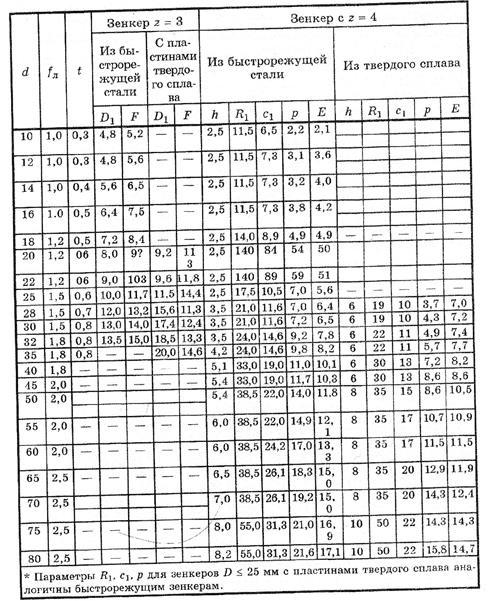 3.2.1. Параметры профиля и винтовых канавок зенкера, Таблица 62 [3, с.202].