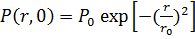 Выражения (4.20) и (4.21) справедливы при однородном освещении передающей апертуры. Другой случай, в котором обусловленное дифракцией распределение мощности в дальней зоне можно легко вычислить, имеет место, когда плотность мощности в ближней зоне принимает гауссовое распределение, как показано на рис.4.10. На практике это важно, так как согласно теории основная поперечная мода излучения лазера цилиндрическим резонатором даёт именно такое распределение выходной мощности, и это наблюдается в действительности.