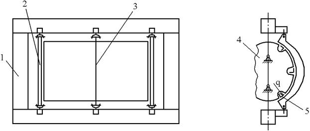 1) закрепление поперечных элементов каркаса 4 в сборочном приспособлении,