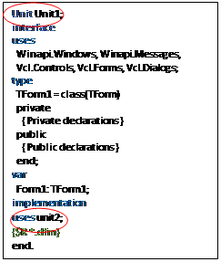 unit Unit1; - заголовок модуля, по умолчанию совпадает с именем файла.