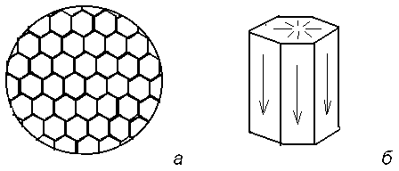 Рис.5. Ячейки Бенара: а - вид сверху, б - отдельная ячейка.