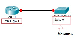 1.8) С помощью кабеля Copper Cross-over соединяем порт коммутатора YKT-dsw1 с портом коммутатора YKT-asw1. Номера портов заданы в таблице 1.