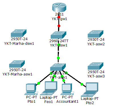 | Switch1 | Switch2950T | YKT-asw1 | Fe0/1 | Pto1(PC-PT) | ||