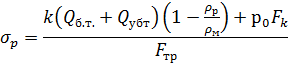 где k– коэффициент, k= 1,15; Qб.т– вес бурильных труб данной секции, Н; Qубт– вес утяжеленных бурильных труб, Н; ρр, ρм – плотность бурового раствора и материала бурильных труб соответственно, кг/м3; р0 – перепад давления на долоте, Па; Fк – площадь сечения канала трубы, м2; Fтр – площадь сечения трубы, м2.