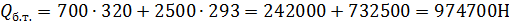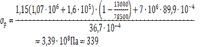 3. Рассчитываем выбранный тип бурильных труб на статическую прочность. Принимаем длину первой секции труб равной 2500 м. Тогда Qб.т = 2500-293 = 732 500 Н. По формуле (8.22):
