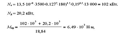 Nв – мощность на холостое вращение бурильной колонны, кВт; Nд – мощность на вращение долота, кВт; Wр– полярный момент сопротивления, м3,