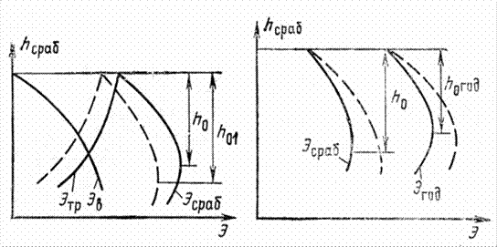 Отмечалось, что величина Эсраб растет до определенного предела hо, после чего снижение напора не компенсируется увеличением используемого стока и полная выработка снижается.
