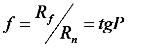 Обозначив суммарную реакцию сил Rn и Rf через RΣ (рис.4.2) и угол между суммарной и нормальной реакцией через p, находим, что коэффициент трения скольжения f является отношением противолежащего катета Rf к прилежащему