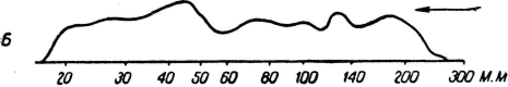 Рассмотрим в качестве примера один из индивидуальных графиков темповых изменений, на котором каждое измерение темпа в опытах с постепенным ускорением фиксировалось на графике А, а в опытах с замедлением— на графике Б. Подъемы графической кри-