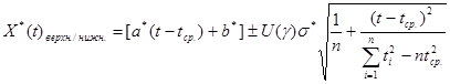 Доверительные интервалы для прогностической функции записываются следующим образом (см. п.3.1 главы 3 настоящего учебника):