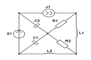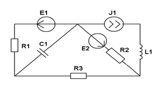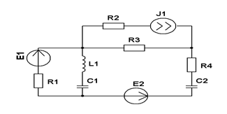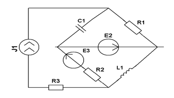 | R1=1 кОм; J1=0,4 мА; Е1 =1 В; XC1=3 кОм; XL1=2 кОм Рассчитать методом наложения ток в сопротивлении R1. | ||
