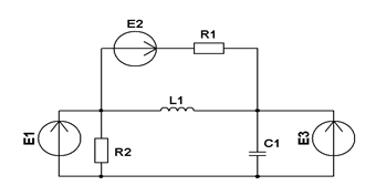 | R1=1 кОм; R3=2 кОм; XL=2 кОм; XC=3 кОм; e1=1 coswt, В; e2=3 coswt, В; e3=5 coswt, В. Рассчитать методом наложения ток в индуктивности. | ||||