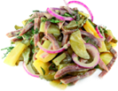 Сельдь, картофель, лук шалот, укроп, заправляется оливковым маслом