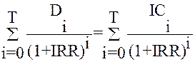 Внутренняя норма доходности характеризует величину чистой прибыли (чистого валового дохода), приходящуюся на единицу инвестиционных вложений, получаемой инвестором в каждом временном интервале жизненного цикла проекта. Методически расчёт внутренней нормы доходности осуществляется по следующим формулам: