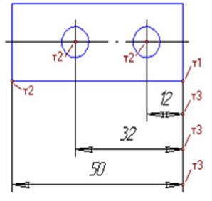 5. Последовательно указать точки т2 и т3 для остальных размеров группы.