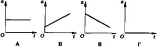 7. На рис. 3 представлены графики зависимости ускорения от времени для разных движений. Какой из графиков соответствует равномерному движению?