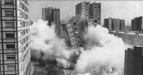 Не только район Прют‑Айгоу в Сент‑Луисе, но и другие районы многоэтажной застройки, в которых, как предполагалось, люди, живущие на социальное пособие, смогут поднять свой статус, были в конечном счете целиком выселены и взорваны. Властям пришлось признать, что они не приняли во внимание несоответствие уровня и образа жизни жильцов структуре зданий и стоимости их обслуживания, которую город не желал брать на себя…