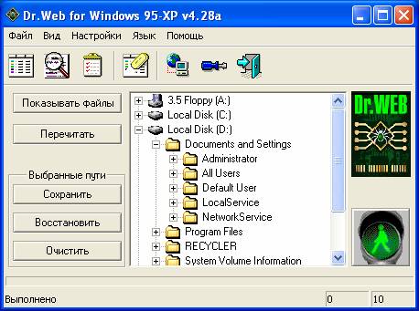 В комплект одного из наиболее совершенных сканеров Doctor Web (рис.2), разработанных Игорем Даниловым (http://www.drweb.ru) входит сторож Spider Guard, выполняющий функции антивирусного монитора.