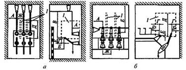 а - вертикальная; б - наклонная; 1 - изолирующие перегородки