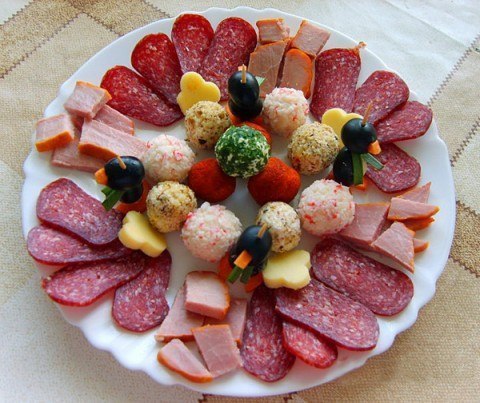 5. Украшение сверху: помидоры- мелко порезанные, огурцы – соломкой +укроп, сыр – на терке, маслины.
