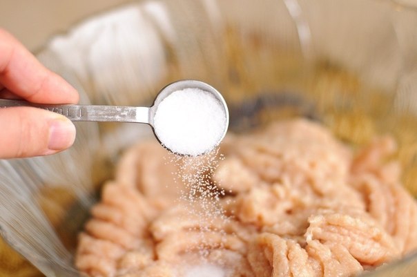 Обжарить лук, добавить мелко порезанную курицу, посолить и немного прожарить.