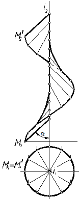 винтовые – прямолинейная образующая перемещается по винтовой линии, причем угол между образующей и осью вращения остается постоянным;