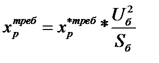 По наименьшему из двух значений IКЗ, определяют сопротивление реактора. Требуемое результиреющее сопротивление до точки КЗ для обеспечения условий IТРЕБКЗ = IНОМ.ОТ или IТРЕБКЗ = (qВЫБР·С)/Ö( tОТКЛ + Ta) определяется в относительных единицах по выражению: