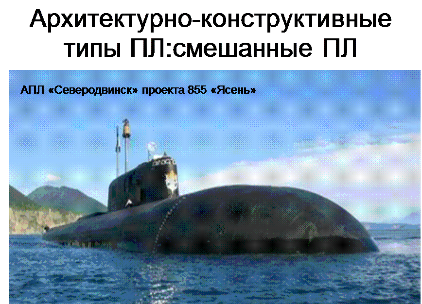 | 3 поколение Лос-Анджелес Огайо Пр. 945, 971, 667БДРМ | 1. Однокорпусная. На всем протяжении их прочного корпуса отсутствует как легкий корпус, так и надстройка. Цистерны главного балласта окончательно разделились на носовую и кормовую группы и разместились в оконечностях. 2. Отказ с 1986 г. от рубочных рулей и установка убирающихся носовых горизонтальных рулей. 3. Деление прочного корпуса двумя межотсечными переборками с выделением реакторного отсека. 4. Резкое увеличение водоизмещения на 50-100% по сравнению со 2-м поколением. | 1. Двухкорпусная архитектура корпуса. 2. «Лимузинное» ограждение рубки. 3. Буксируемая ГАС. 4. Всплывающая спасательная камера. 5. Резкое увеличение водоизмещения на 50-100% по сравнению со 2-м поколением. |