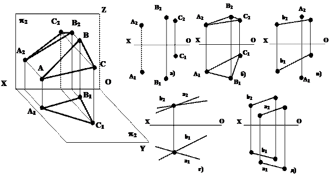 3) прямой, и не принадлежащей ей точкой (рис.5.1,в);