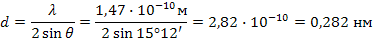 - расстояние между соседними плоскостями, называемое межплоскостным. Исходя из условия (1) и учитывая, что