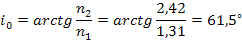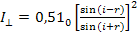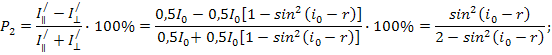 С помощью формул Френеля определяем степень поляризации отраженного луча: