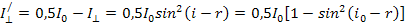 Найдем интенсивности света после преломления в направлениях, перпендикулярном и параллельном плоскости преломления: