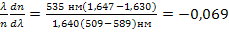 — средняя дисперсия показателя преломления среды. Для λ = 534 нм и