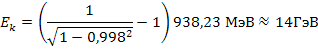 Так как излучают релятивистские протоны, то их кинетическая энергия равна