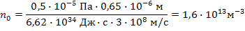 Дано: λ = 0,65·10-6 м, р = 0,5·10-5 Па,