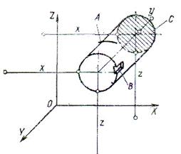 Рис. 6.5. Ориентировка длинного цилиндрического тела в пространстве