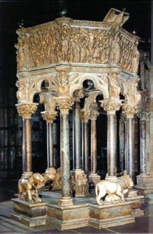 Кафедра собора в Сиене выполнена Никола Пизано при участии его сына Джованни Пизано (ок. 1245 – после 1314) и ученика Арнольфо ди Камбио (ок. 1245 – до 1310). Джованни Пизано (больше известному как архитектор) принадлежат мраморные статуи на фасаде собора в Сиене (1284 – 1299) и кафедра в церкви Сант‑Андреа в Пистое (окончена в 1301). Скульптурным произведениям Джованни Пизано, проникнутым страстной эмоциональной напряженностью, присуще сочетание традиций проторенессансной пластики с готической изломанностью контуров.