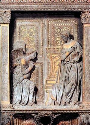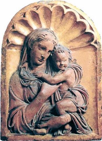Нельзя не упомянуть работы семейства Роббиа – итальянских скульпторов, представителей раннего Возрождения во Флоренции. Они первыми стали применять в рельефе и круглой пластике технику цветной майолики. Вообще говоря, техника глазури (майолики), известная с глубокой древности народам Передней Азии, была в Средние века завезена на Пиренейский полуостров и остров Майорку, отчего и получила свое название, а затем широко распространилась в Италии. Глава семьи – Лука делла Роббиа (ок. 1400 – 1482) в молодости обучался ювелирному мастерству испытал значительное влияние Л. Гиберти. Среди его работ – певческая кафедра в соборе Санта‑Мария дель Фьоре (1431 – 1438), 13 медальонов в капелле Пацци церкви Санта‑Кроче во Флоренции. Произведения Луки делла Роббиа, в том числе многочисленные изображения мадонн, отмечены ясным спокойствием композиции, проникнуты земным, жизнеутверждающим духом, лирической одухотворенностью. К флорентийской школе относится также племянник и ученик Луки – Андреа делла Роббиа (1435 – 1528). Он работал исключительно в технике майолики, чем расширил сферу ее применения. В этой технике выполнены медальоны на фасаде Оспедале дельи Инноченти во Флоренции (1463 – 1466) и скульптурная группа «Встреча Марии и Елизаветы» в церкви Сан‑Джованни Фуорчивитас в Пистое (1491).