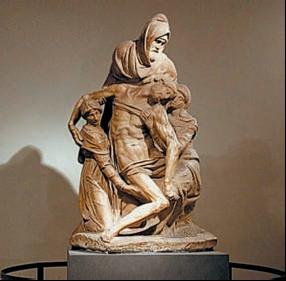 XVI век в истории итальянской скульптуры – это в первую очередь творения великого Микеланджело Буонарроти (1475 – 1564). Уже в юношеских произведениях – рельефы «Мадонна у лестницы», «Битва кентавров» (1490 – 1492, Каза Буонарроти, Флоренция) – определились основные черты творчества Микеланджело – монументальность, пластичность, мощь, внутренняя напряженность и драматизм образов, преклонение перед красотой человека. Заметим, что эти и все последующие скульптурные работы гениального мастера выполнены из мрамора. Отдавая дань увлечению античными памятниками, Микеланджело создал статую «Вакх» (1496 – 1497, Национальный музей, Флоренция). В традиционный сюжет скульптурной группы «Оплакивание Христа» (1497 – 1498, собор Св. Петра, Рим) он внес глубокое гуманистическое содержание, яркую жизненную убедительность образов. В 1501 году Микеланджело возвратился из Рима во Флоренцию. Здесь он выполнил колоссальную статую «Давид» (1501 – 1504), воплотив в ней героический порыв и идею гражданской доблести, отразившие борьбу флорентийцев против тирании Медичи. В 1505 году Папа Римский Юлий II призвал Микеланджело в Рим, где поручил ему создание собственной гробницы. Работа над гробницей растянулась (с перерывами) на долгие 40 лет и была завершена лишь в 1545 году. Гробница Юлия II расположена в церкви Сан‑Пьетро ин Винколи в Риме. Для нее Микеланджело создал ряд замечательных статуй, в том числе наделенного могучей волей, титанической силой и темпераментом «Моисея» (1515 – 1516), исполненные трагизма статуи «Восставший раб» и «Умирающий раб» (1513 – 1516, Лувр, Париж), а также четыре статуи рабов, оставшиеся неоконченными (1532 – 1534, Галерея Академии художеств, Флоренция). Глубокий пессимизм, охвативший Микеланджело перед лицом гибели в Италии политических свобод, кризиса идеалов Возрождения, отразился в образном решении скульптур капеллы Медичи в Новой сакристии церкви Сан‑Лоренцо во Флоренции. Статуи герцогов Лоренцо и Джулиано Медичи лишены портретного сходства, их дополняют четыре символические фигуры, изображающие времена суток и олицетворяющие беспощадную неотвратимость течения времени. К самым поздним скульптурным работам титана Возрождения относится знаменитая «Пьета» для флорентийского собора Санта‑Мария дель Фьоре, предназначенная для собственного надгробия Микеланджело. Она была разбита автором и восстановлена его учеником Тиберио Кальканьи, а сейчас находится в музее собора во Флоренции. Творчество Микеланджело сыграло значительную роль в истории европейского искусства, подготовило появление маньеризма, а затем и барокко.