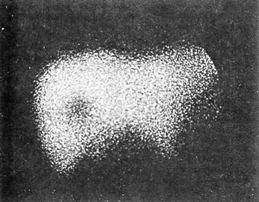Рис. 14 Гепатосцинтиграмма больного К., 20 лет, в передней проекции. Положение
