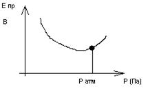 В области давлений меньше атмосферного длина свободного пробега электрона велика. Возрастает их скорость и кинетическая энергия. Эти факторы облегчают ионизацию нейтральных атомов и Епр падает.