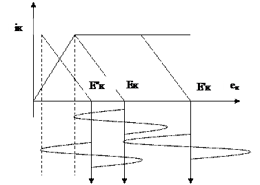 При уменьшении Ек, переходим в перенапряженный режим работы (Ек"), ток Iк уменьшается, и уменьшиться амплитуда Ек.
