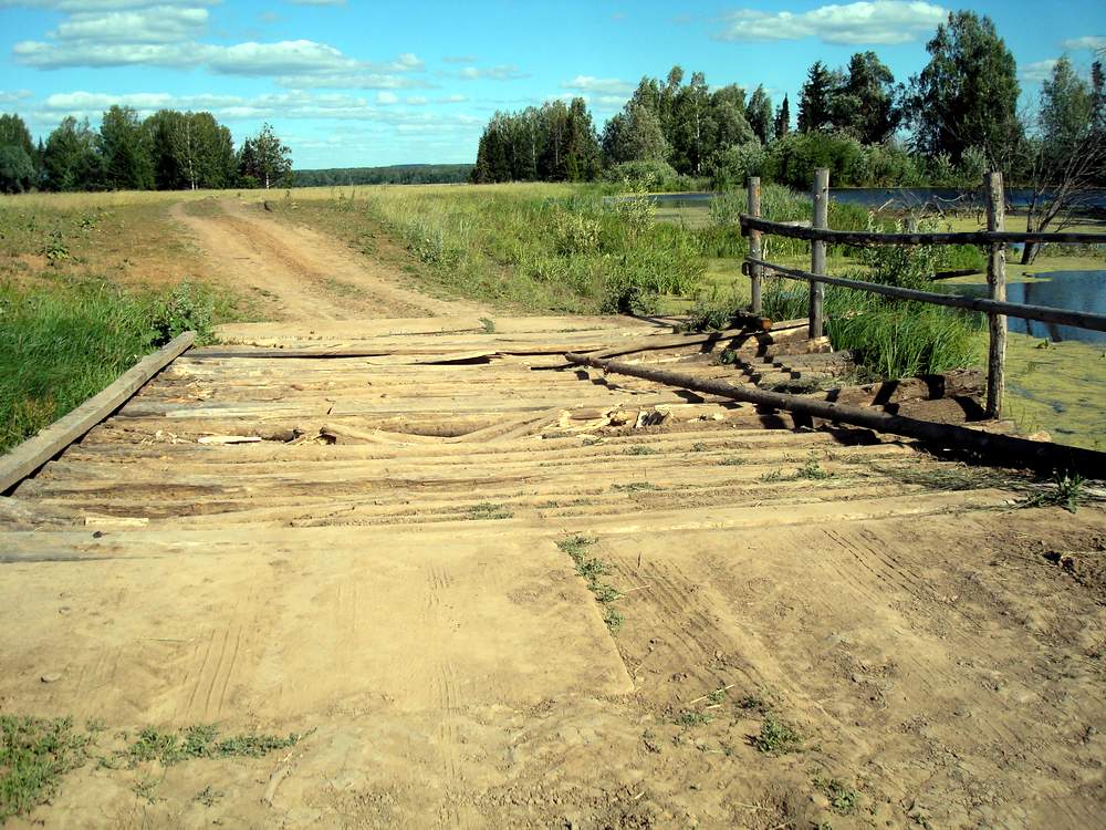 Сразу за остановкой будет грунтовая дорога, ее преграждает деревянный мост, машину можно оставить т. к. мост этот не в лучшем своем состоянии.