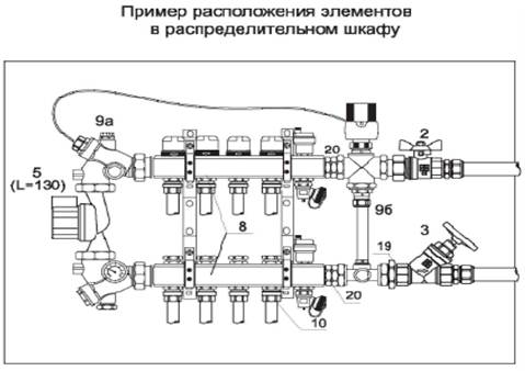 Пример подключения в распределительном шкафу (обвязка гребенки)
