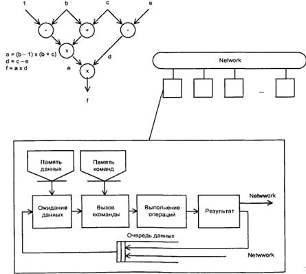 Машины, управляемые потоком данных относятся к классу datafllow architecture. Реализация datafllow - модели вычислений может привести к наивысшей степени параллелизма, т.к. в ней используется альтернативный принцип управления – управление потоком данных, который не накладывает дополнительных ограничений, присущих рассмотренному выше командному принципу управления.
